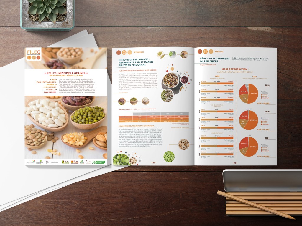La filière des légumineuses à graines d’Occitanie (FILEG) publie chaque année un rapport sur les chiffres et statistiques des cultures de légumineuses. J’ai été chargé de mettre en page