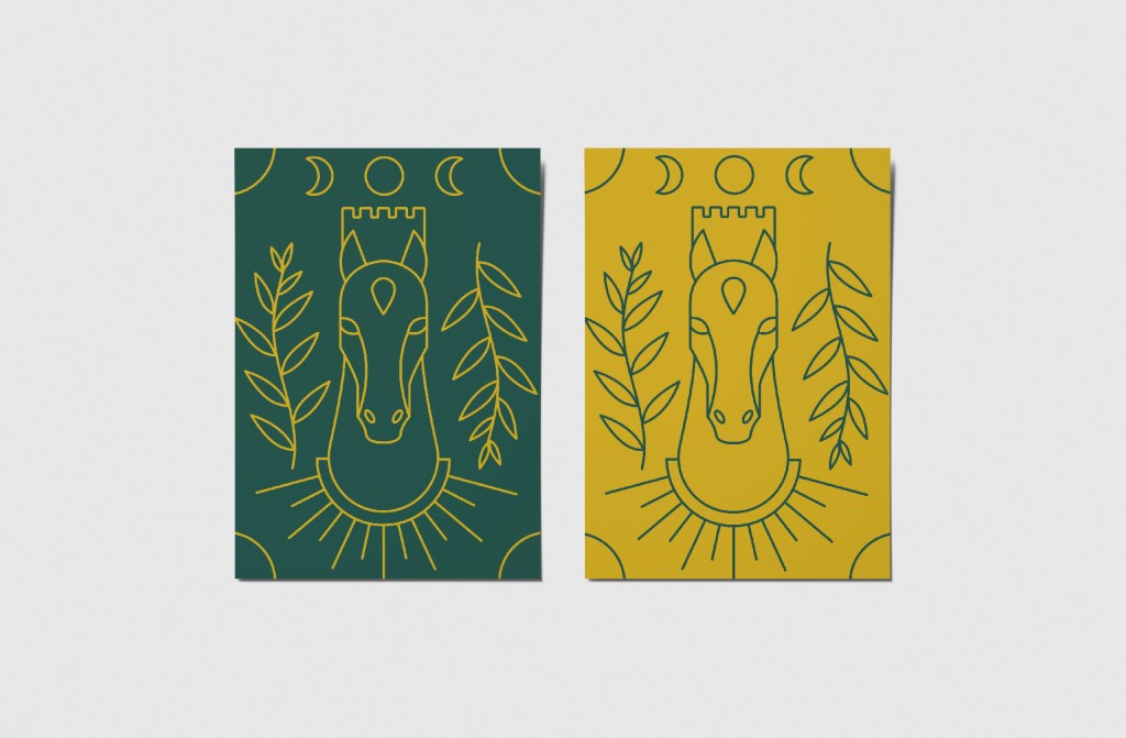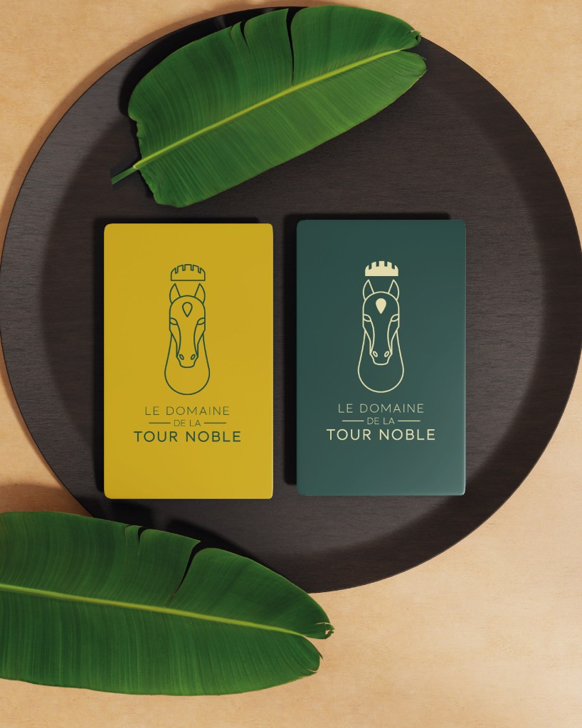 Le Domaine de la Tour Noble est un centre équestre basé à Pamiers (09). Il m’a été demandé de définir et créer l’identité visuelle ainsi que des illustrations pour des cartes postales et un usage sur les réseaux sociaux. Je suis partie sur une approche minimaliste avec une palette bicolore mélangeant vert pin qui reprend la nature environnante et l’ocre or qui souligne l’histoire du lieu.